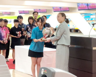 試合は前半からともに1つのミスがあり、第3フレームまではほぼ互角の展開、その後、第4フレームから第9フレームまでストライクを続けた杉山選手、第4、第5フレームがスペア、その後に第6フレームから第9フレームまでストライクを続けた鴨下選手、結果、合計ストライク数、ミスの数は同じであったものの、6連続ストライクが大きく決め手となった、杉山くるみ選手が233ピン―215ピンで見事に大会2連覇を遂げました。